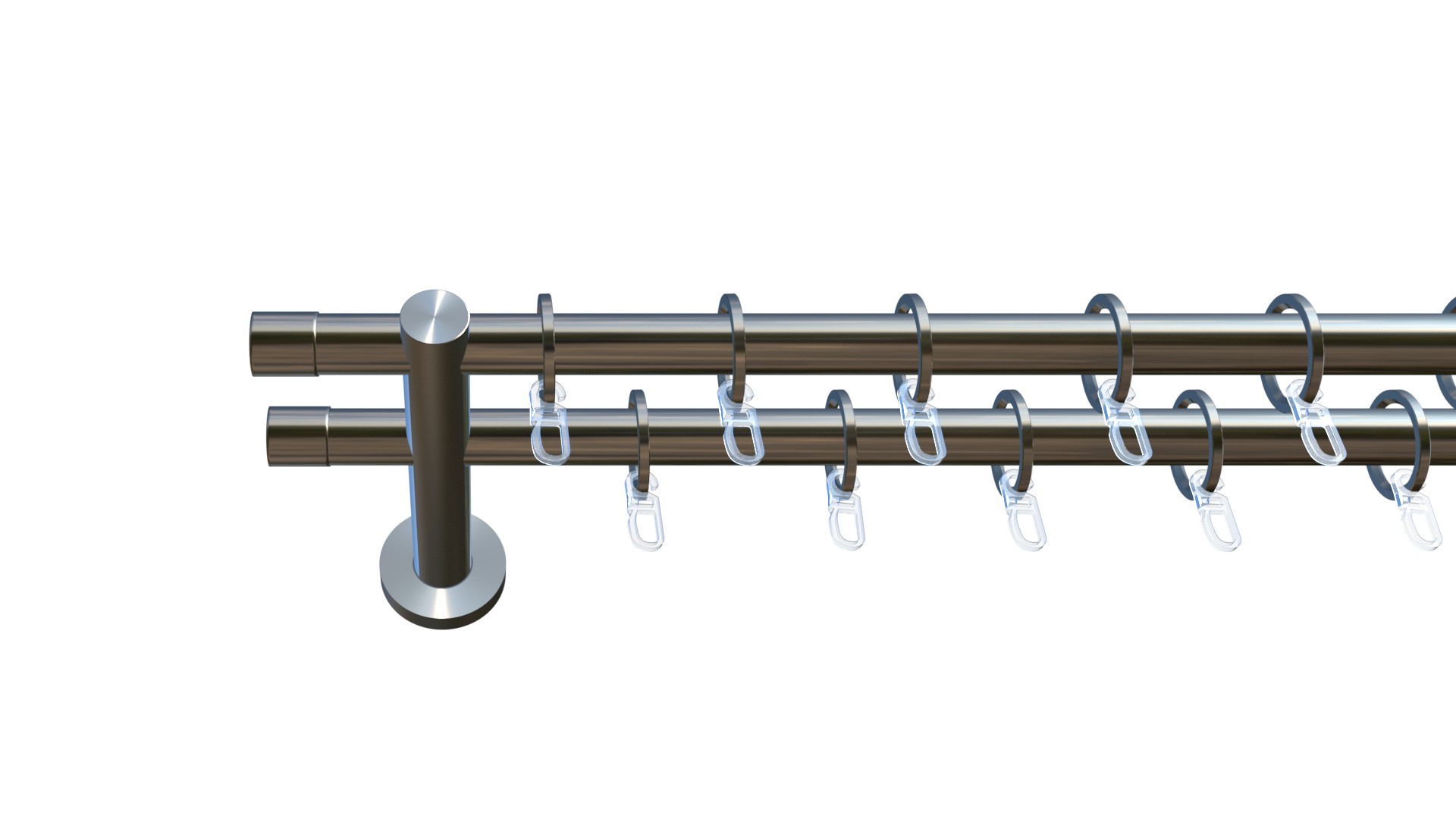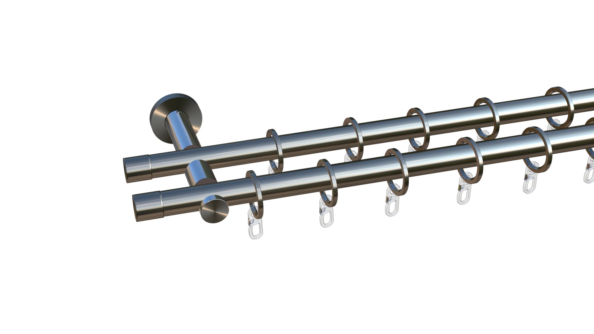 Produktinformationen "tilldekor Gardinenstange nach Maß, Andrax, 2-lauf, edelstahl-optik 20 mm Durchmesser, Wunschmaßlänge 100-400 cm inkl. Trägern,Endstücken, Ringen und Faltenlegehaken"
