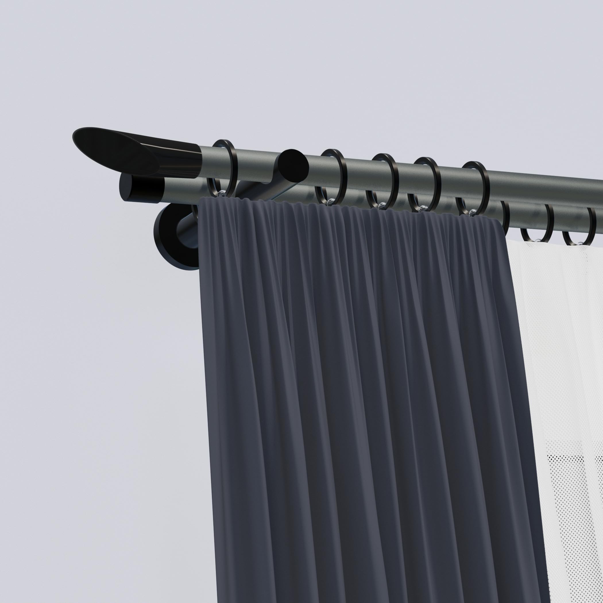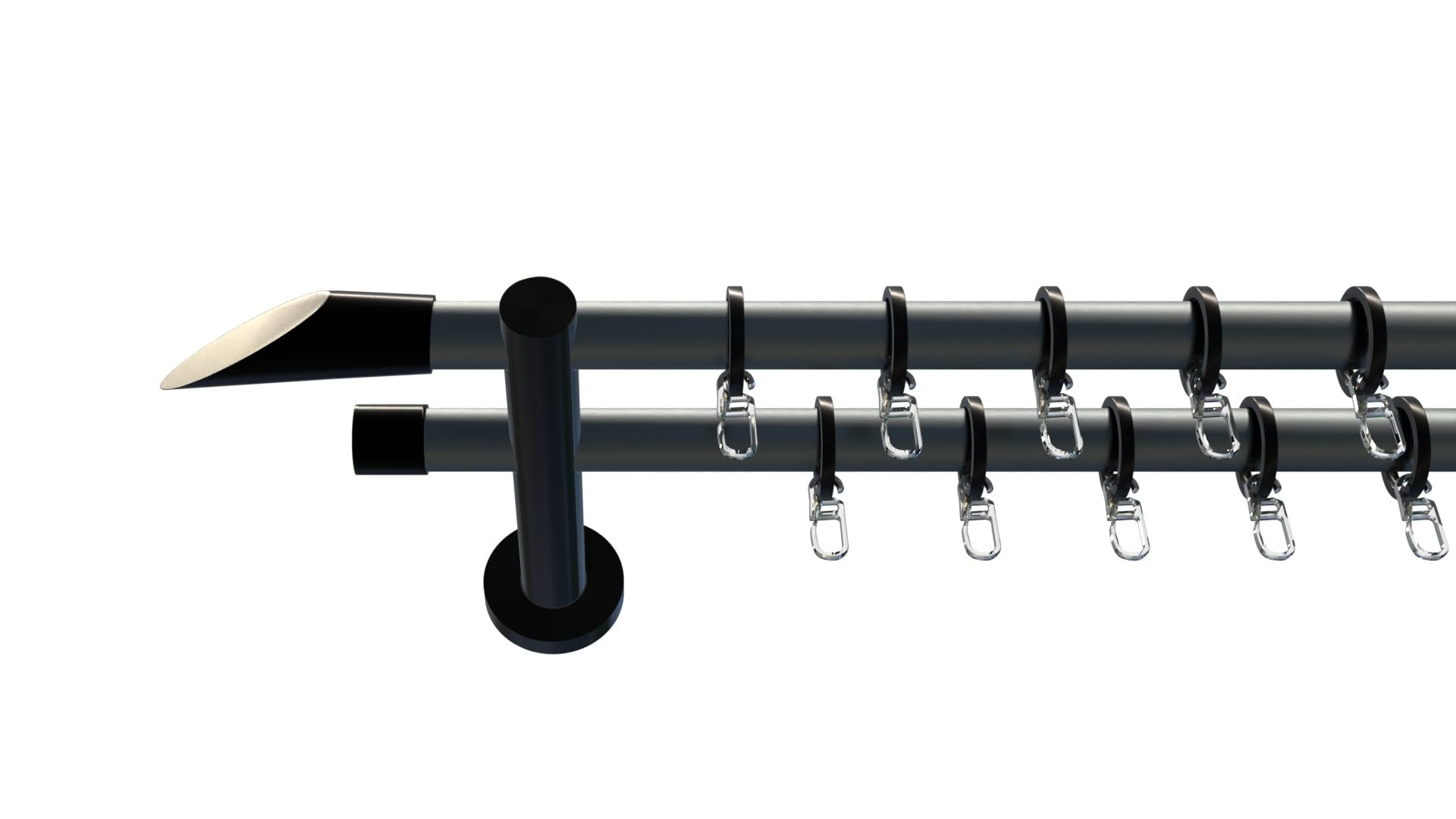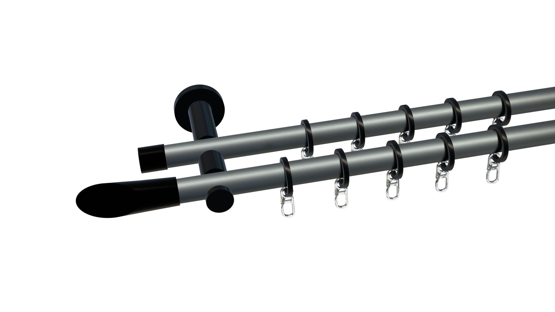 Produktinformationen "tilldekor Gardinenstange nach Maß, Marbella, 2-lauf, Silber-schwarz 20 mm Durchmesser, Wunschmaßlänge 100-400 cm inkl. Trägern,Endstücken, Ringen und Faltenlegehaken"