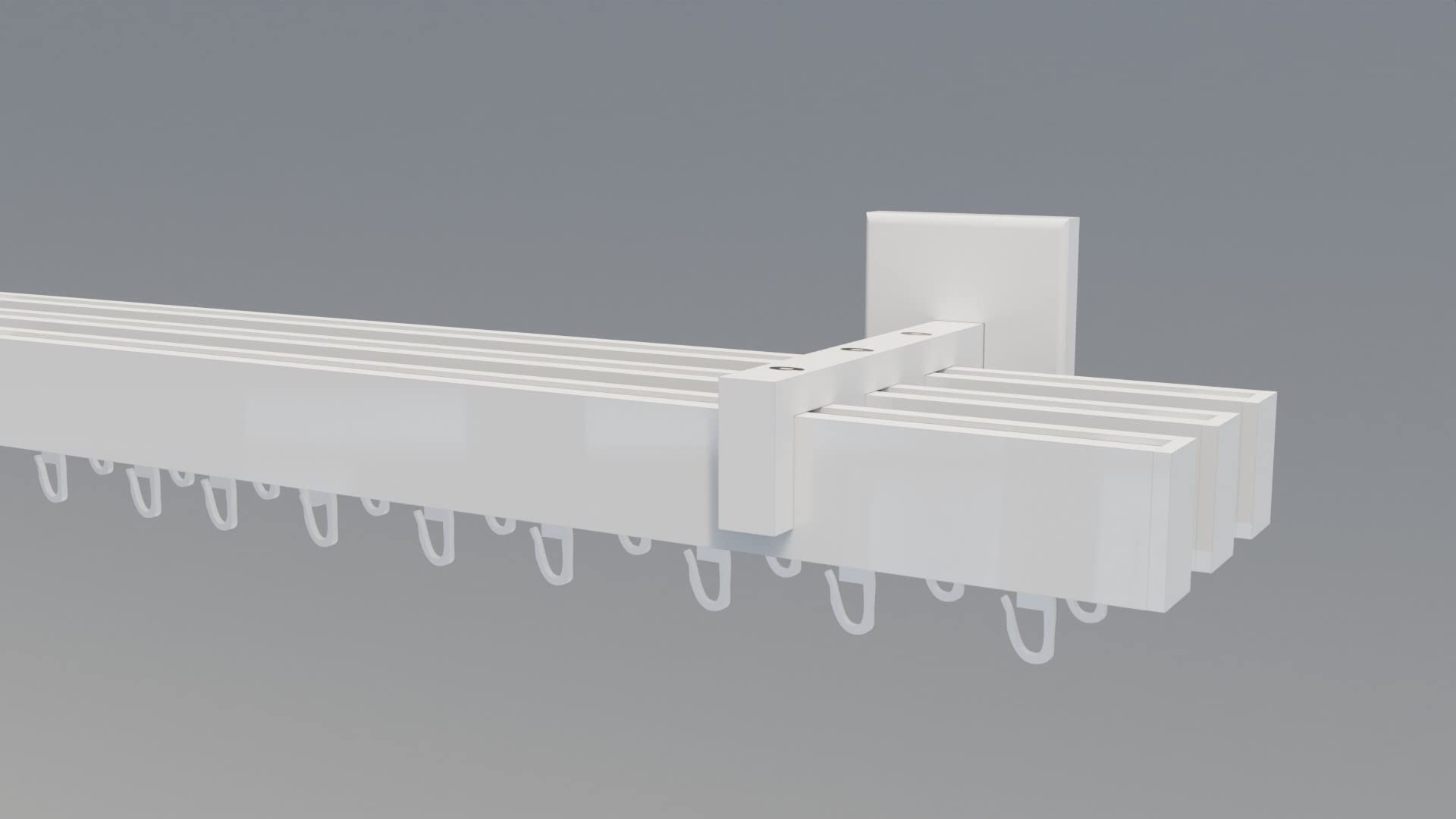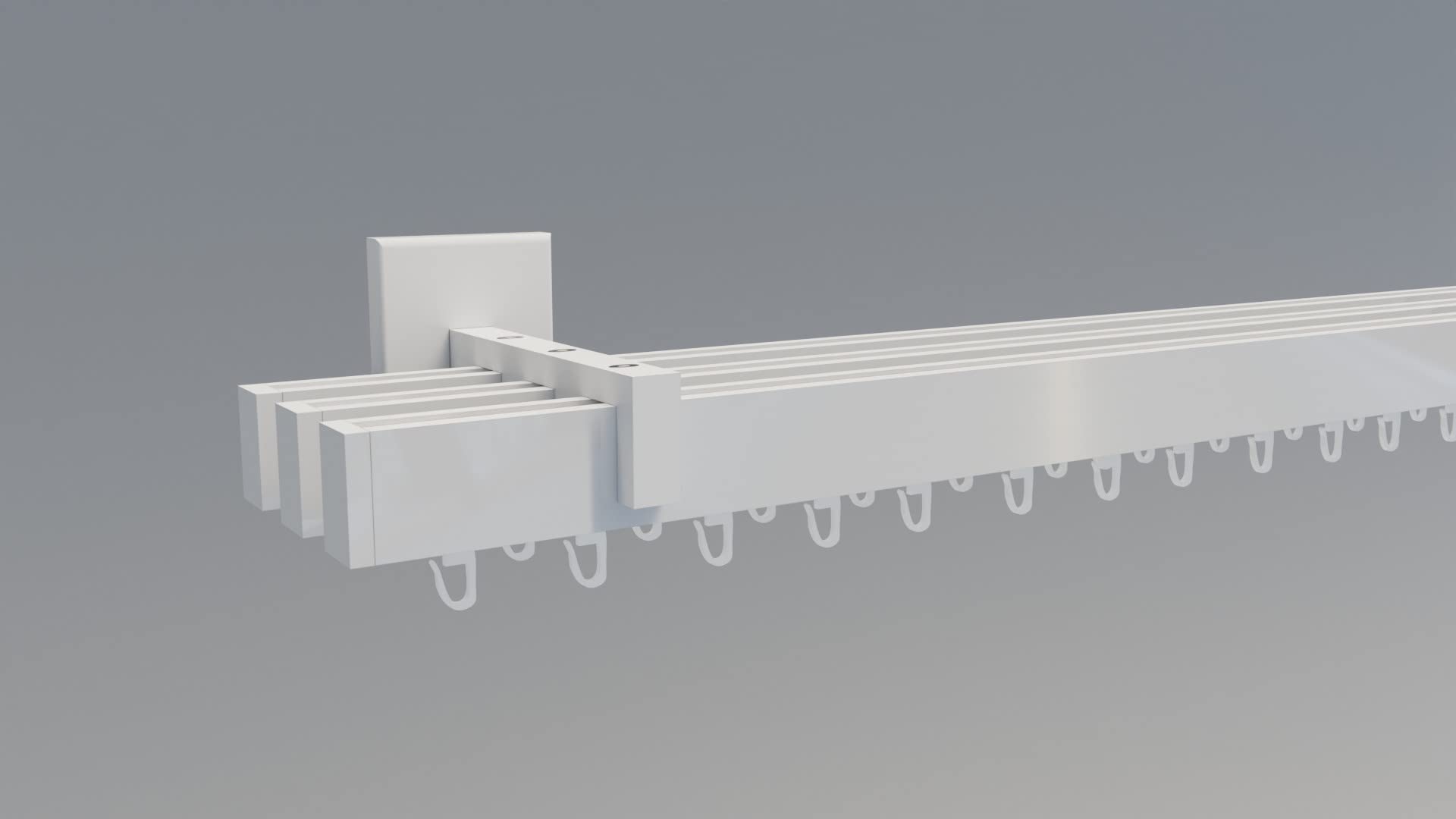 Der innovative Träger unserer rechteckigen Innenlaufstangen SQUARE-LINE bietet eine besonders einfache Handhabung. Träger an der Wand befestigen, Profil von unten einschieben und fixieren.
