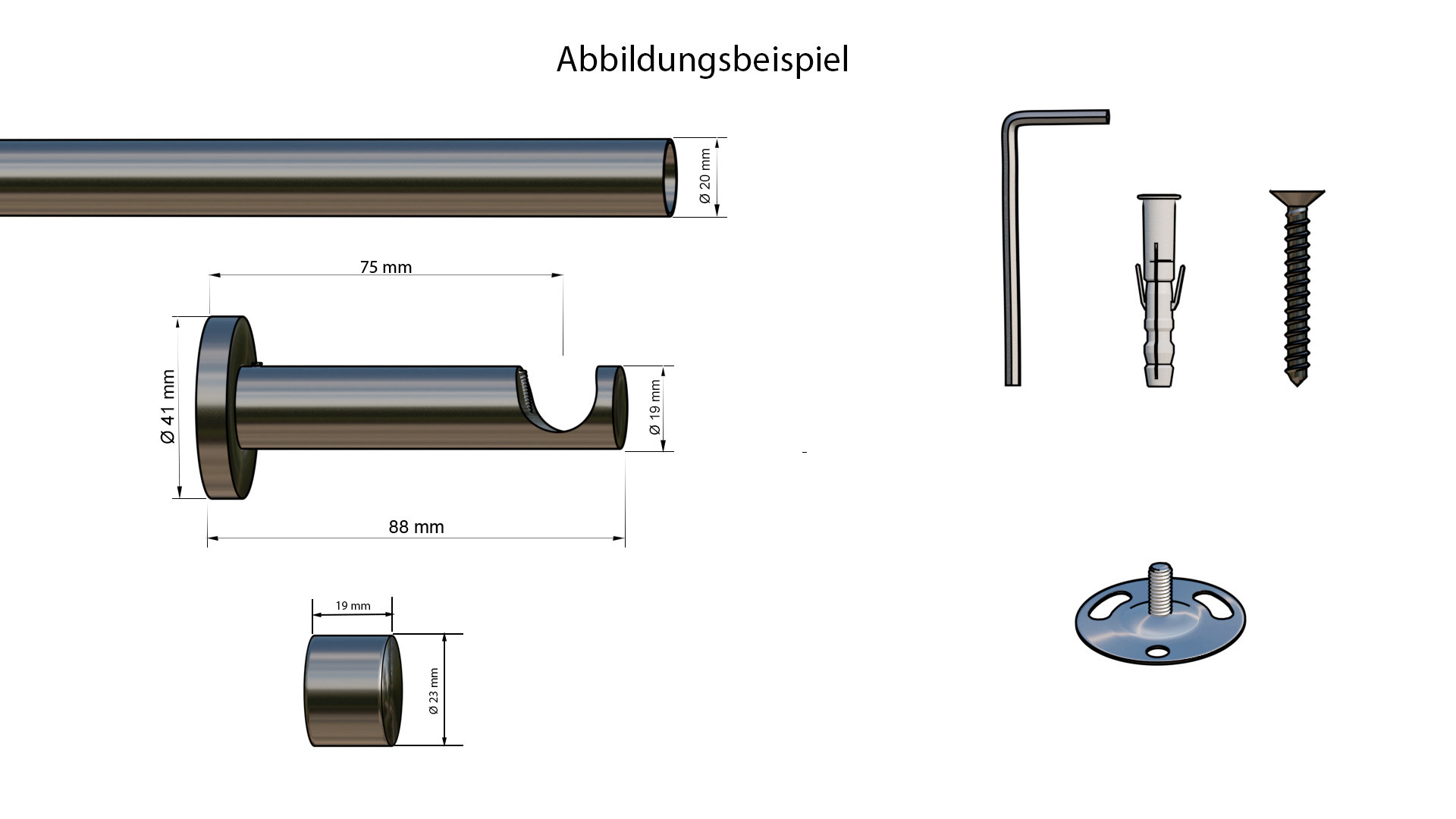 Kurzbeschreibung:Unsere Serie HIGH-LINE verbindet höchste Ansprüche an Qualität und Funktion mit stilsicheren Designs und Farben. Das Gardinenstangenset ist sehr gut verarbeitet und aus hochwertigem Stahl bzw. Aluminium gefertigt.Die Gardinenstange in der Stärke 20 mm hat beste Gleiteigenschaften, damit Sie die Vorhänge und Gardinen mühelos auf und zu ziehen können.Geliefert wird diese Gardinenstange inkl. der passenden Träger, Endstücke und Befestigungsmaterial. Produktspezifikation:Durchmesser: 20 mmAusführung: 2-läufigMaterial: MetallTräger: Wandabstand ca. 5,5 cm und 10,5 cmGesamtlänge: Stangenlänge zzgl. Endstücke Montage:Unser HIGH-LINE Gardinenstangenset bietet eine besonders einfache Handhabung.Nachdem Sie die Träger an der Wand befestigt haben, müssen Sie nur noch die Gardinenstange von oben in die Träger einlegen. Durch die bewährte Klemmtechnik ist die Stange direkt an gewünschter Stelle fixiert. Bitte beachten Sie:Abhängig von der Darstellung Ihres Bildschirmes kann die Farbdarstellung der Produkte eventuell leicht von den Original Farben abweichen.Bitte reinigen Sie die Vorhangstange nur mit einem Staubwedel oder einem weichen, feuchten Tuch ohne Zusatz von Reinigungsmitteln. Set enthält:1 x Rundstange Ø20mm, ab 210cm werden die Rundstangen mittig geteilt geliefert zusätzlich werden 2 x Verbinder mitgeliefert2 x Träger; ab 210cm 3 TrägerMontageanleitungSchraubenDübelMontageschlüssel